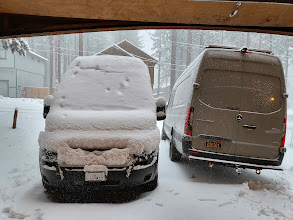 DROdio’s (Right) and Jing’s van (left) parked in the Storytell.ai’s Tahoe Offsite (Dec 2022)