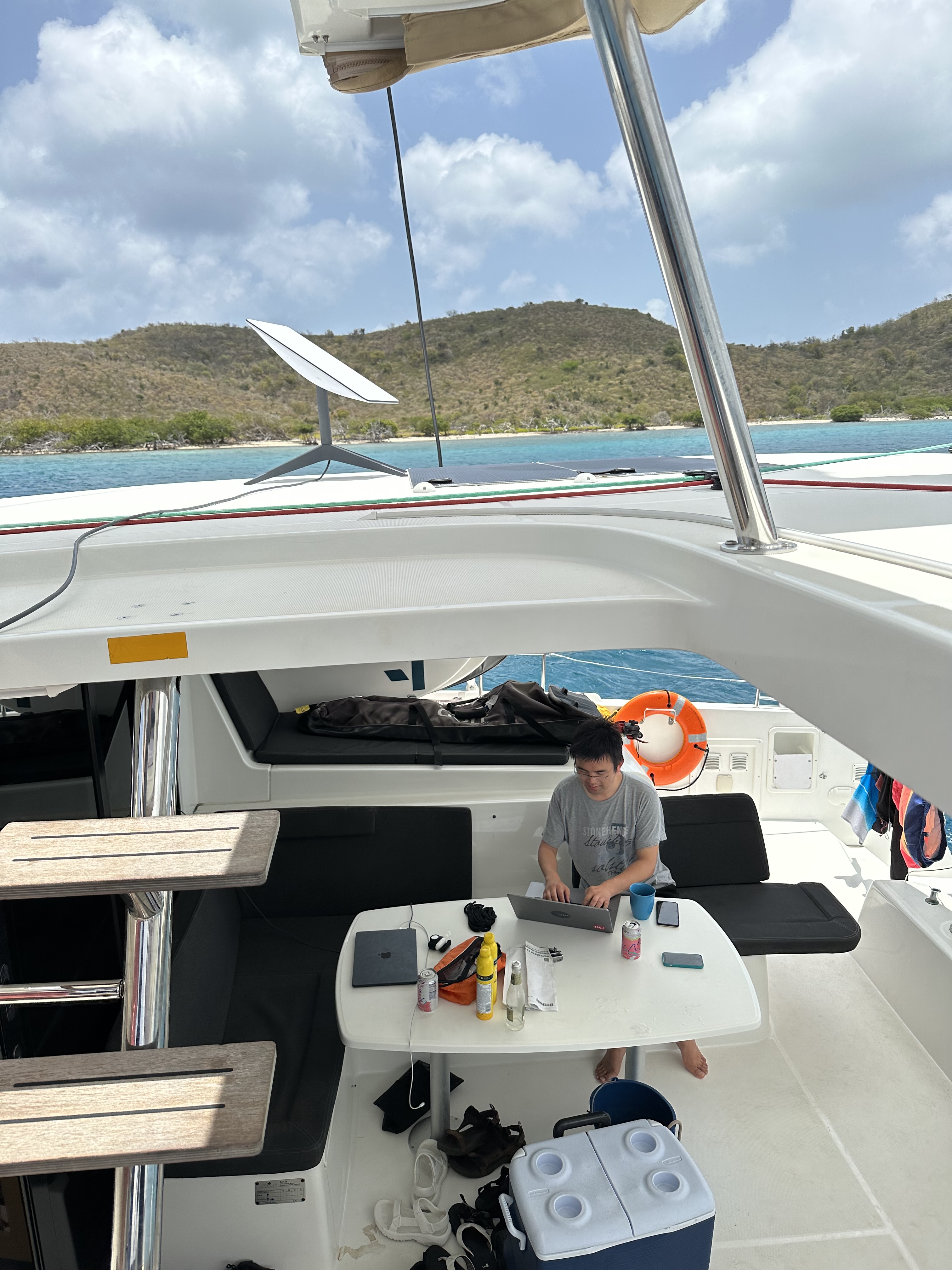 Jing was working at a Catamaran for our Storytell advisor & user offsite at BVI. Thanks Elon! (June 2023)