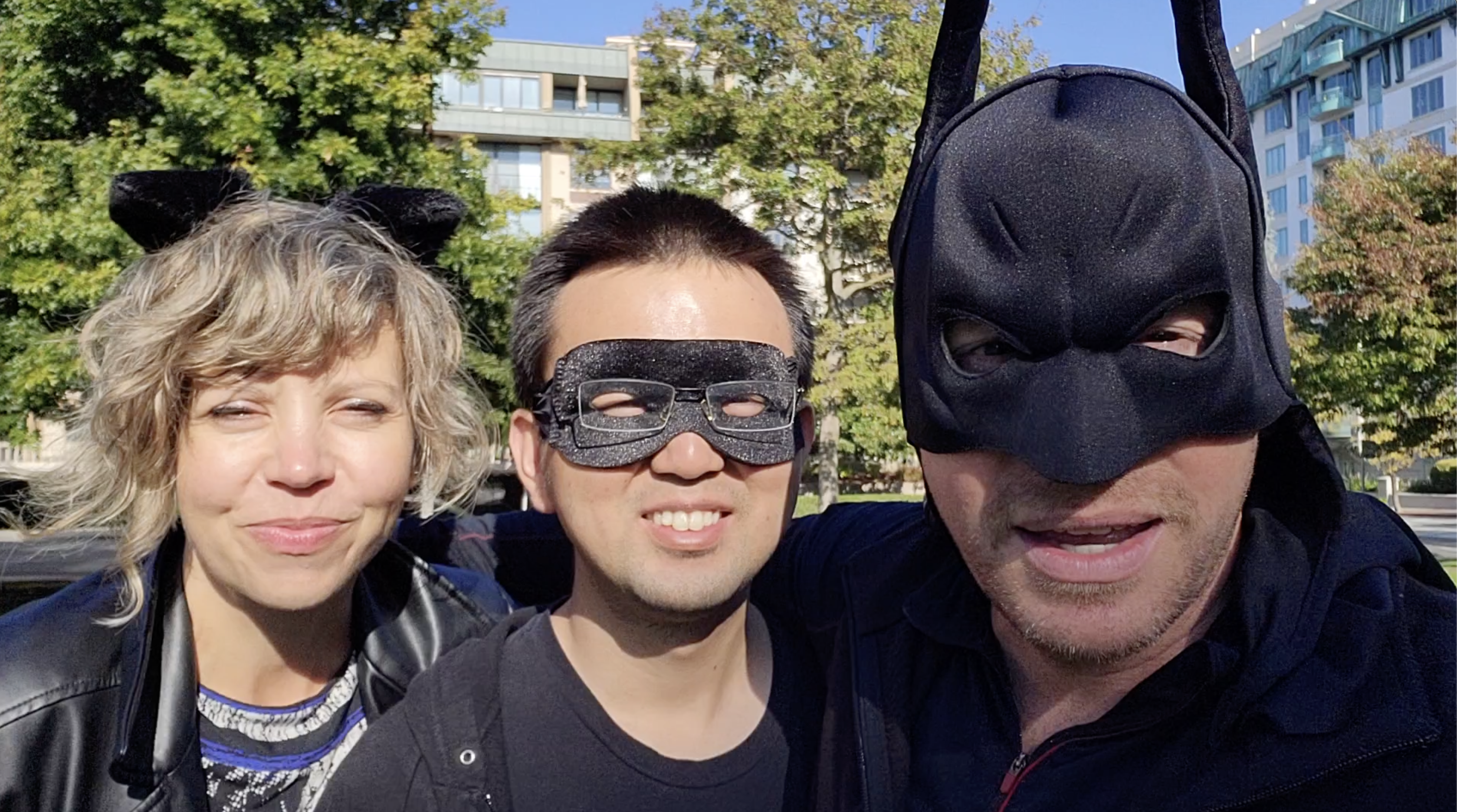 Jing, DROdio, and Erika in a Halloween Party organized by an investor